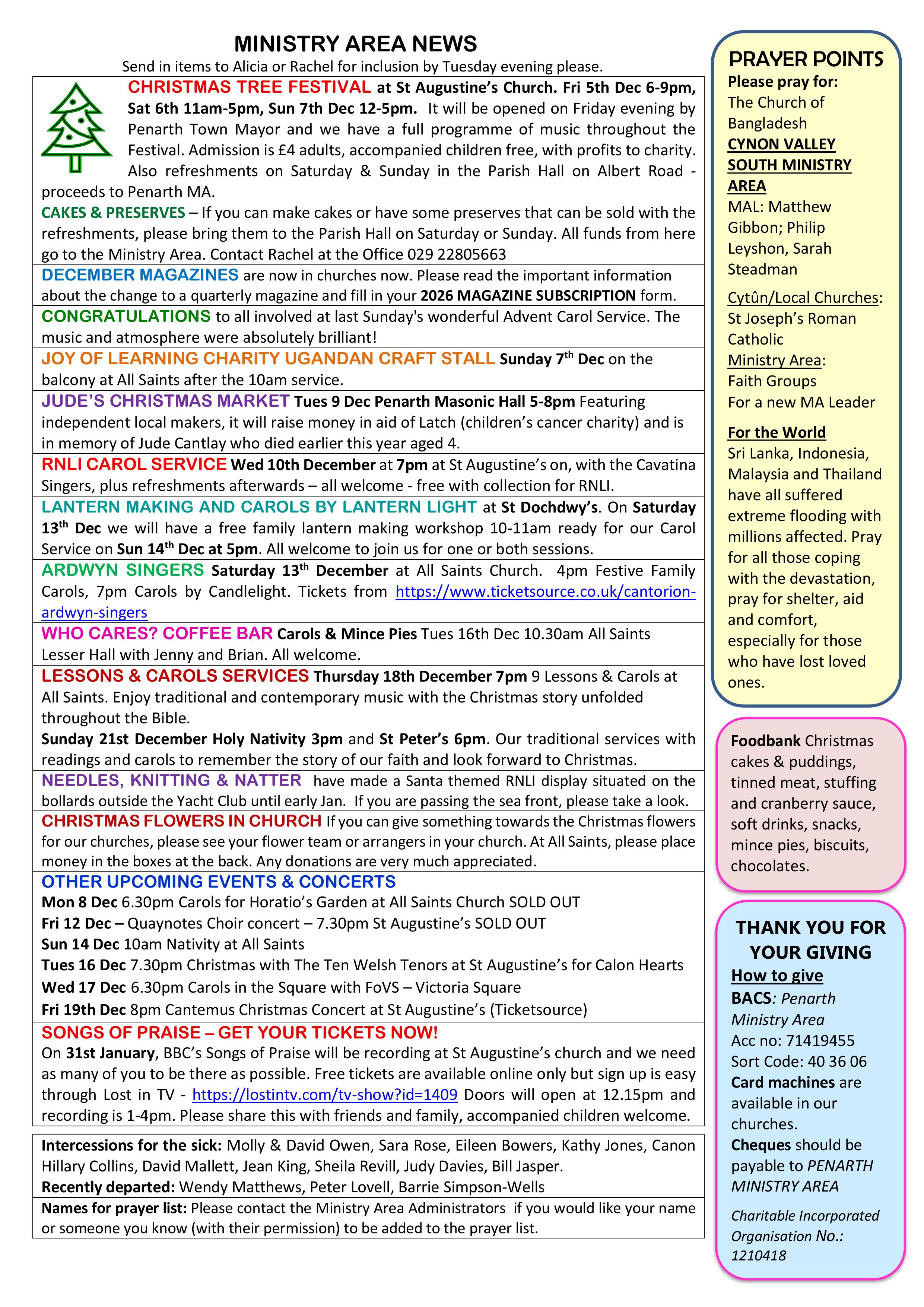 The annual RNLI Carol Service takes place at St Augustine's 7pm. All welcome. Coffee and mince pies afterwards.